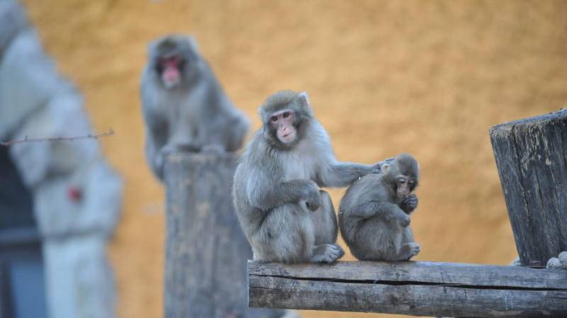 Китай. Город Ханчжоу. Обезьяны играют.