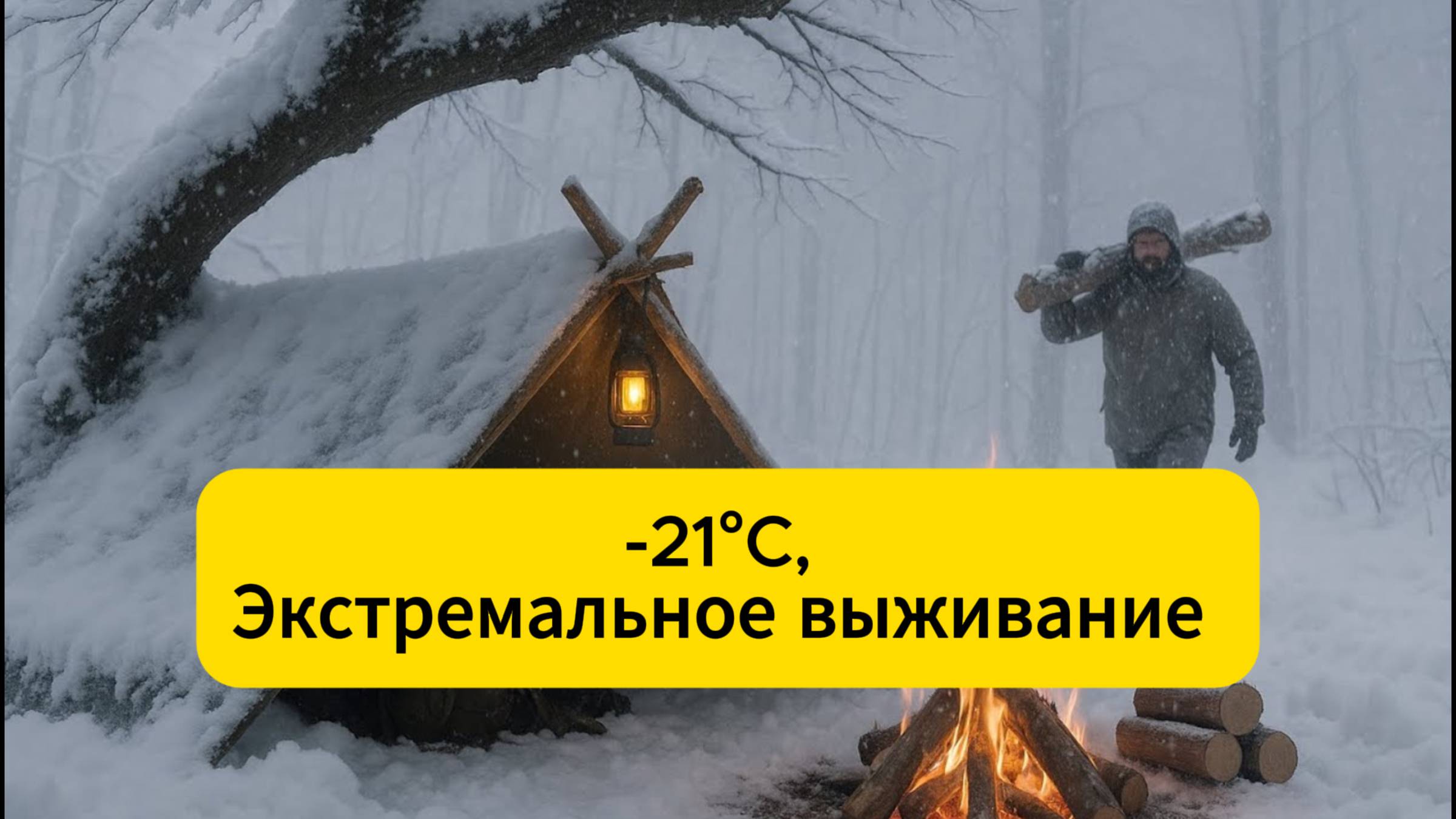 Экстремальное выживание зимой в одиночку. Снег, Метель, -21°C,. Имею только огонь.