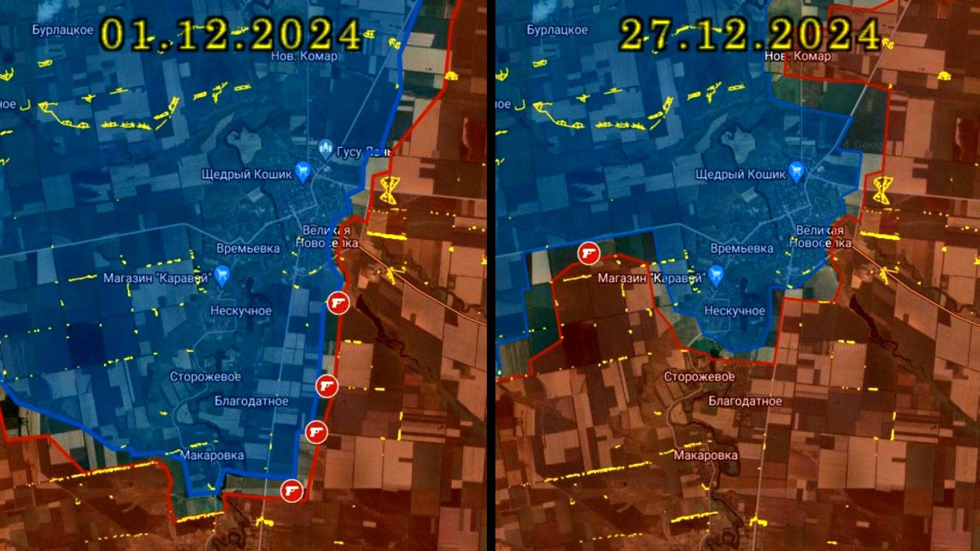 Карта боевых действий у Великой Новоселки с 1 по 27 декабря 2024 года
