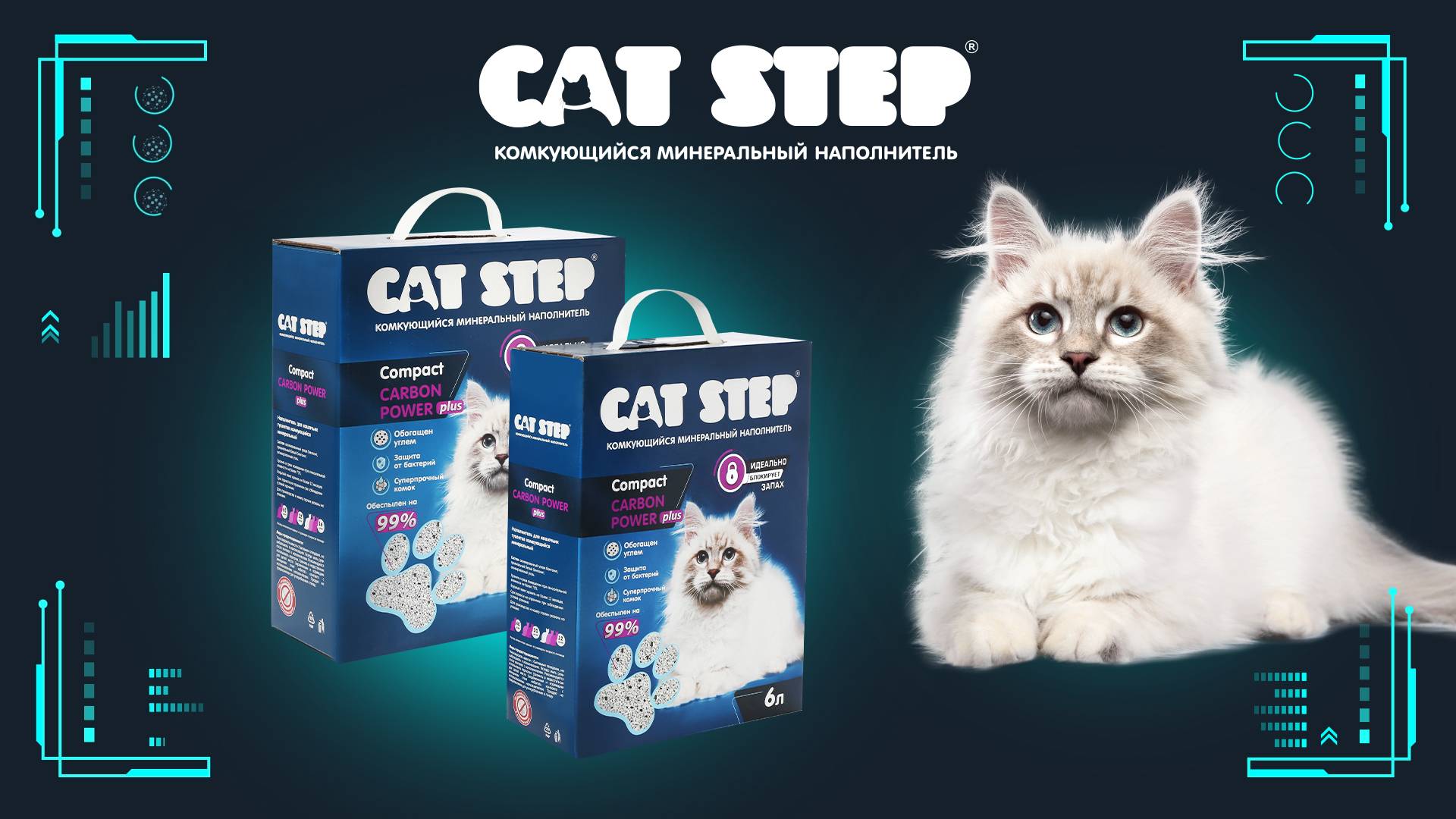 Наполнитель комкующийся минеральный CAT STEP Compact Carbon Power Plus