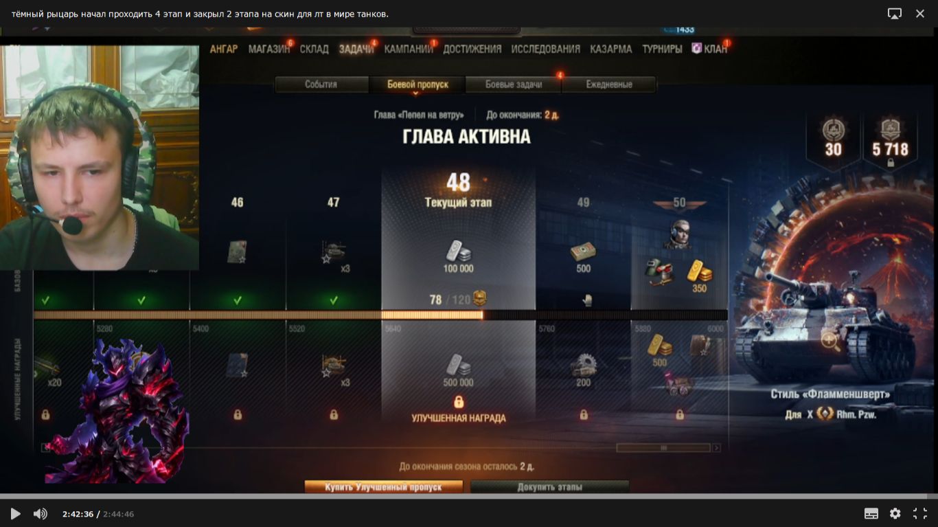 тёмный рыцарь начал проходить 4 этап и закрыл 2 этапа на скин для лт в мире танков. 16 серия.