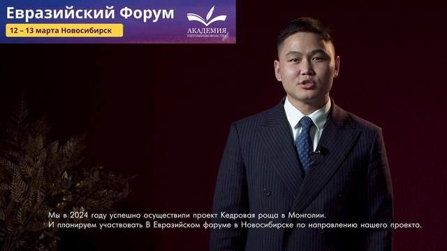 Дорогие друзья! Продолжаем рассказывать о зарубежных последователях Академии питомниководства и делимся с вами приглашением от наших монгольских коллег на Евразийский Форум, который пройдет 12 - 13 марта в Новосибирске на базе отеля «Domina Novosibirsk» (ул. Ленина, 26, Новосибирск). 🌿Л. Баваасан является директором устойчивого развития компании "Норд Роуд" в Монголии, которая специализируется на получении кедровых орехов Ознакомиться со списком тем и спикеров: akademiagm.online/novoforum 🎁 Еще один бонус для тех, кто уже планирует посетить наш Евразийский Форум 12 - 13 марта: при бронировании номеров в отеле «Domina Novosibirsk» по промокоду Академияпитомниководства будет действовать скидка до – 18% по ссылке: https://nsk.dominarussia.com/pinar-booking/?be-offer=716510&promo-code-plain=Академияпитомниководства 🎫 Торопитесь, количество билетов ограничено! https://novosibirsk.qtickets.events/143852-evraziyskiy-forum