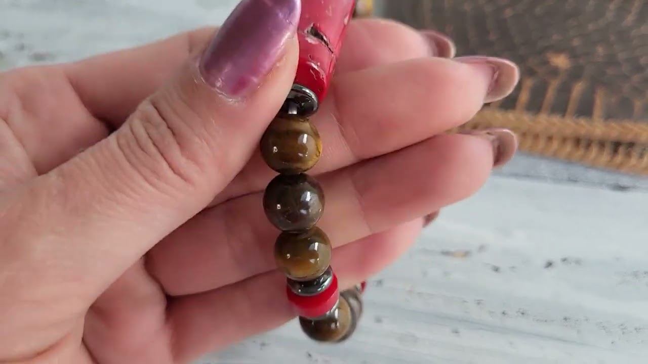 Браслет мужской из коралла, тигрового глаза, гематита