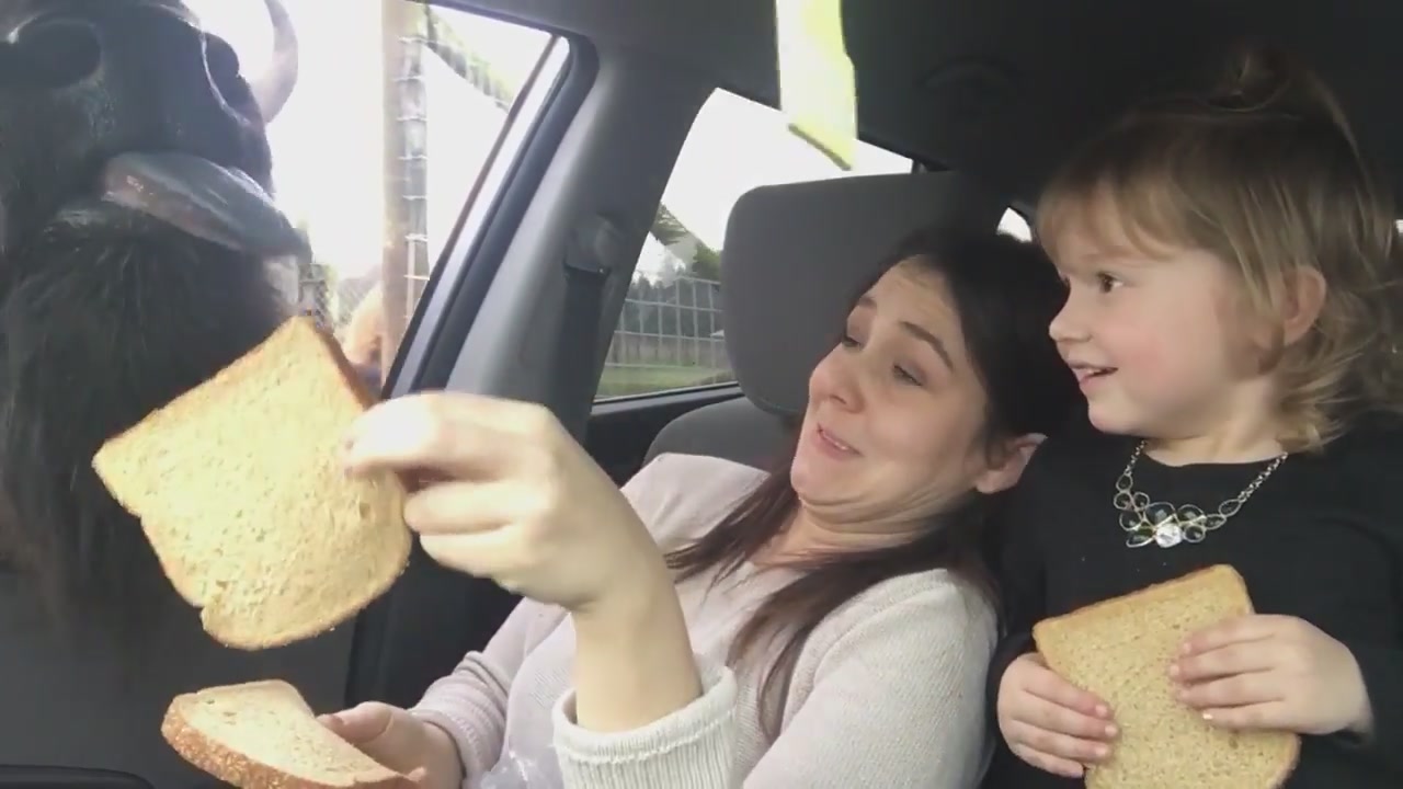Девушка очень испугалась бизона,когда тот полез языком к ней в машину за добавкой. #прикол #еда #бизон #девушка