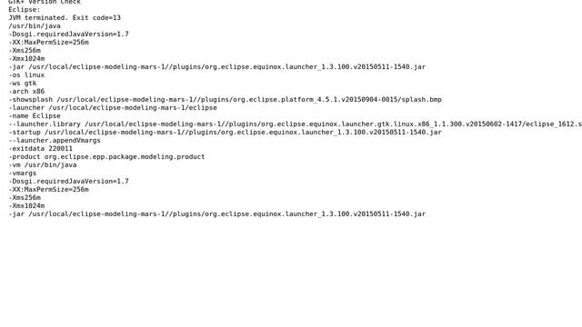 Unix & Linux: Error starting Eclipse on Centos 6 (JVM terminated. Exit code=13) Helpful? Please support me on Patreon: https://www.patreon.com/roelvandepaar With thanks & praise to God, and with thanks to the many people who have made this project possible! | Content (except music & images) licensed under cc by-sa 3.0 | Music: https://www.bensound.com/royalty-free-music | Images: https://stocksnap.io/license & others | With thanks to user Mongrel (https://unix.stackexchange.com/users/98965), user Dean (https://unix.stackexchange.com/users/142773), user Chaminda Bandara (https://unix.stackexchange.com/users/26379), and the Stack Exchange Network (http://unix.stackexchange.com/questions/260027). Trademarks are property of their respective owners. Disclaimer: All information is provided "AS IS" without warranty of any kind. You are responsible for your own actions. Please contact me if anything is amiss at Roel D.OT VandePaar A.T gmail.com.