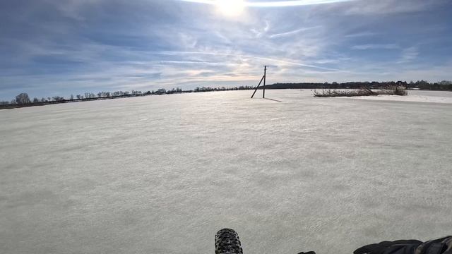 Пытаемся на фэтбайке Аляска 3.0 покинуть территорию рыбхоза по подтаявшему льду.Обстановка накалена.