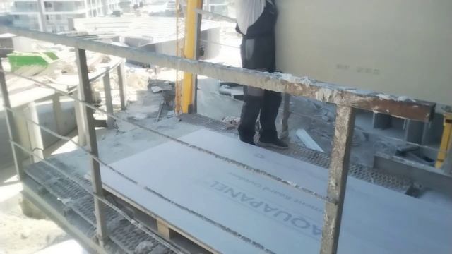 Приём паллет с плитами Аквапанель на этаж