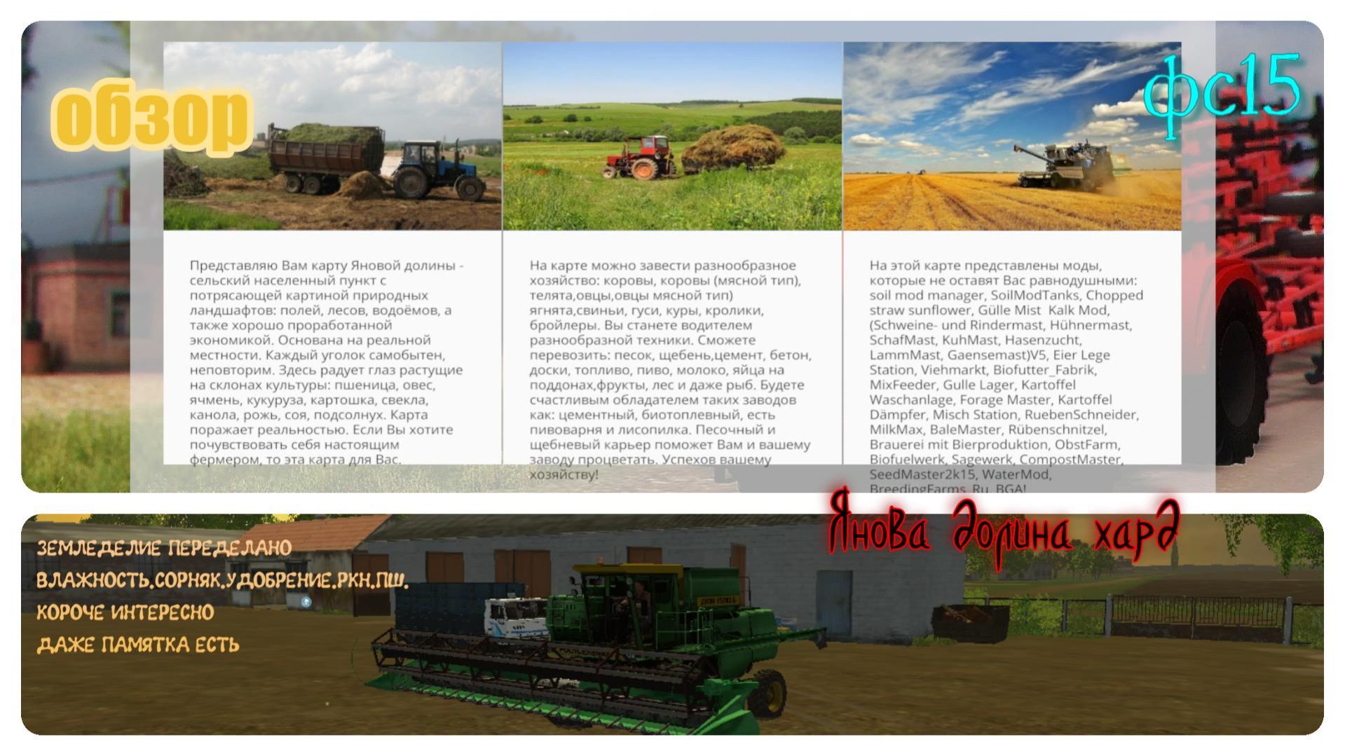 Обзор Янова -долина-farming simulator 15-хард-земледелие как в жизни-мод пак СССР