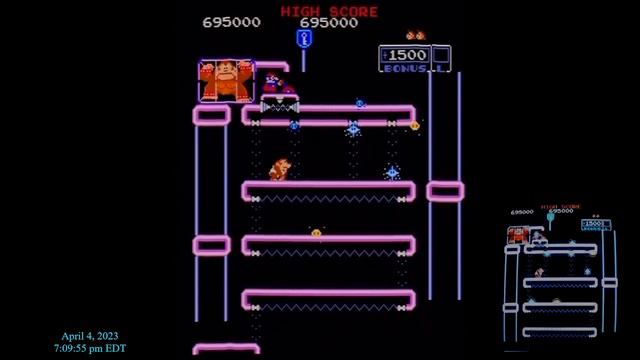 Game starts at 19:50. Achieved on 4/4/2023 on a Donkey Kong Junior PCB and original Donkey Kong cabinet. Audio is muted due to a combination of copyright and personal/private conversations. This is the second DKJ Arcade record I've gotten in the last week since acquiring a PCB. I scored 1,461,700 on 4/1/2023. This is also not my PB, which is 1,503,400 on MAME, nor it is an overall world record - one that currently stands at 1,555,500. I am very displeased with this particular game and plan on annihilating this score very soon.
