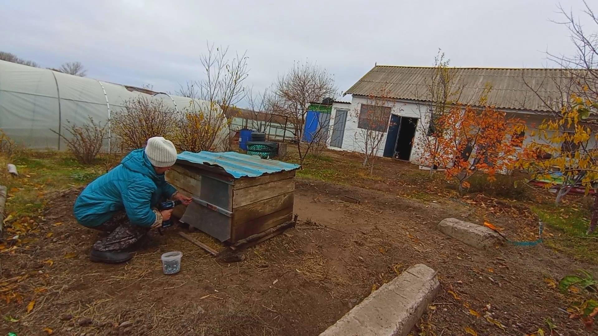 УТРО В ДЕРЕВНЕ. КОРМИМ КУРОЧЕК. РЕМОНТ БУДКИ. УБОРКА ВО ДВОРЕ.