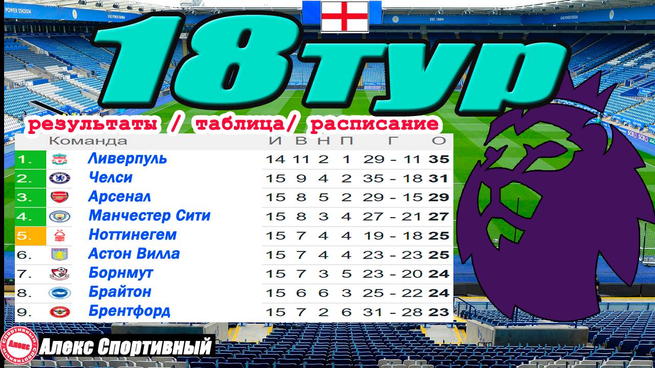 Футбол. Чемпионат Англии (АПЛ) 18 тур. Таблица, расписание, результаты. Суперинициатива Арсенала.