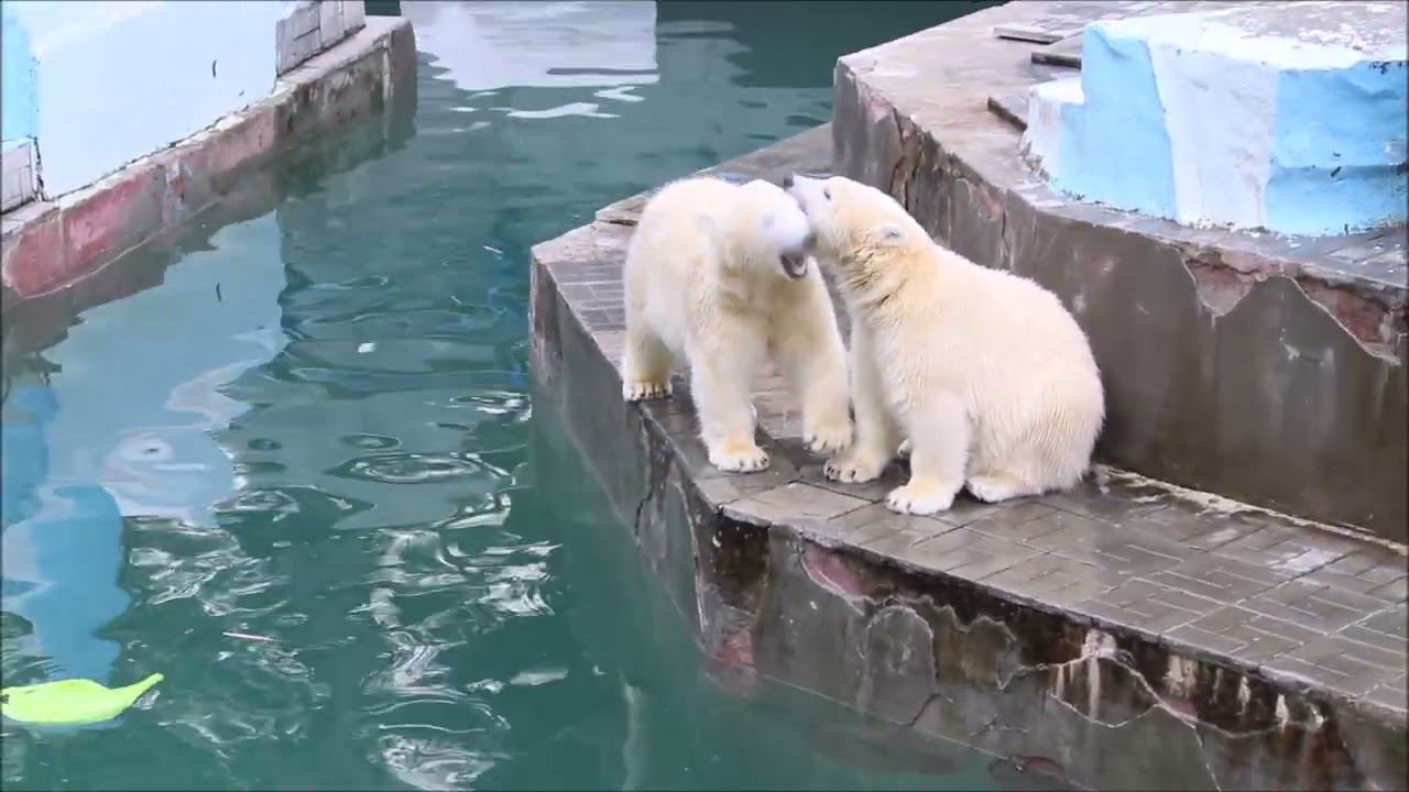 Герда родилась в Москве 20 ноября 2007 года. Её мама Симона, папа Врангель. В Новосибирск переехала 05.08.2008. В 2013 году у Герды и Кая родилась Шилка. В 2015 году она переехала в Японию. В 2015 году родился Ростик. 6 декабря 2018 года он переехал в Китай. В 2018 году родились Норди и Шайна. Сейчас они находятся в нашем зоопарке в закрытой от посетителей хозяйственной зоне. В другие зоопарки их не могут отправить. Сначала была пандемия, сейчас границы закрыты и санкции. Белые медведи Норди и Шайна содержатся в МУП «Новосибирский зоопарк имени Р. А. Шило» с рождения и по настоящее время. Данная пара молодых медведей находится вне экспозиции зоопарка, поэтому посетители не могут их видеть. Передача молодых медведей в другой зоопарк пока не планируется, — ответили на запрос редакции в пресс-центре мэрии Новосибирска. У них есть бассейн, игрушки. Их так же кормят как и раньше. Голодные не бывают. Шайна размером с маму, Норди с папу. Шайна командует Норди. Одиночные животные. Как правило, миролюбивы по отношению друг к другу, но между самцами в брачный период случаются стычки. Взрослые самцы могут нападать на медвежат. Гон с марта по июнь. Продолжительность жизни — максимум 25—30 лет; в неволе рекорд долгожительства — 42 года. Вес очень крупных самцов в некоторых частях ареала 700 и даже 800 кг: есть данные о зверях весом до 1000 кг. Обычно вес меньше. Самки всегда не только меньше, но и значительно легче самцов. Так, самцы в восточной Гренландии в состоянии нормальной упитанности весят 400—450 кг, хорошо упитанные — до 500 кг, самки, даже очень сытые, здесь же редко весят больше 350—380 кг, т. е. их вес составляет около 75% веса самцов. Длина тела на 3-й день после рождения 28—32 см, средний вес — около 755 г (650—840 г). На 26-й день длина тела увеличивается незначительно — до 35—38 см, а вес возрастает до 1125—1275 г. В возрасте 60 дней самцы весят около 7 кг, самки — около 6 кг при длине тела у первых 58—60 см, у вторых 54—58 см. В возрасте 4 месяца медвежата достигают веса 22—23 кг, в 6-месячном возрасте при длине около 110 см — 40—43 кг, в 8-месячном — 58—62 кг. Длина тела в возрасте с 6 до 9 месяцев нарастает по 6—7 см в месяц. Во время зимнего сна рост почти прекращается. В зоопарке медведей кормят утром морской рыбой, хлеб с рыбьим жиром внутри, морковь, яблоки, морская капуста, яйцо дают сырое. Медвежат подкармливают молоком из соски. На ужин мясо (говядина, конина, куры или индейка). Летом и осенью арбузы, дыни, ранетки, кабачки, тыквы, огурцы. Когда показательное кормление летом бросают живую рыбу. Медвежата с медведицей находятся до 2-х лет. 16 декабря 2022 года Герда родила 2-х медвежат. И это две девочки! Имена дали 25 июня. Медвежат зовут Стрелка и Белка. Обзор вольеров белых медведей https://www.youtube.com/watch?v=mAt_b7JD0B4&list=PLGvf0V-rAHxkpGKJaWIZIUxRKgKiqV3xZ&index=17&t=0s