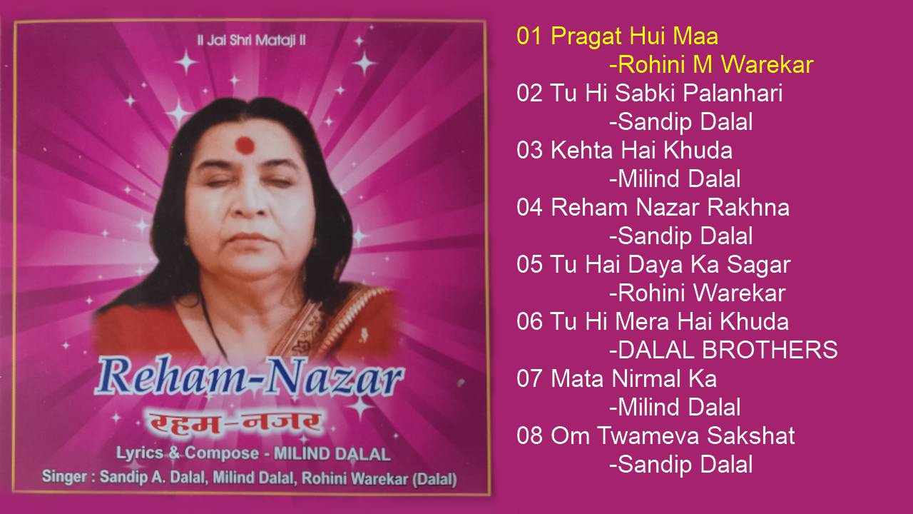 00:00 01 Pragat Hui Maa Rohini M Warekar 06:26 02 Tu Hi Sabki Palanhari Sandip Dalal 16:48 03 Kehta Hai Khuda Milind Dalal 23:08 04 Reham Nazar Rakhna Sandip Dalal 31:00 05 Tu Hai Daya Ka Sagar Rohini Warekar 36:12 06 Tu Hi Mera Hai Khuda DALAL BROTHERS 48:09 07 Mata Nirmal Ka Milind Dalal 54:44 08 Om Twameva Sakshat Sandip Dalal