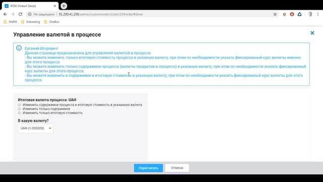Обучение функционалу OneBox (Оформление процессов в разных валютах)