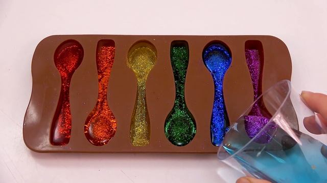 Как сделать радужную блестящую ложку из желе Cutting ASMR - Bon Bon