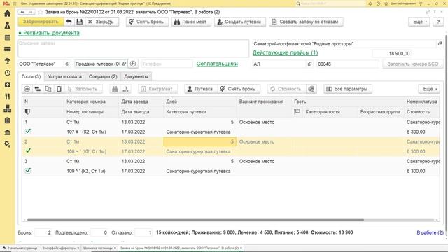Сохранение номера БСО в случае незаезда гостя в «Кинт: Управление санаторием»