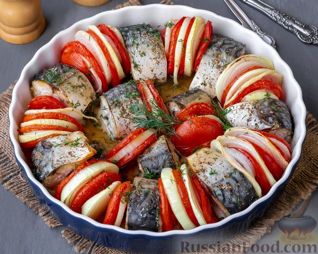 Скумбрия, запечённая с помидорами и репчатым луком, - лёгкое, вкусное и простое в приготовлении рыбное блюдо, которое своим красочным видом украсит любое застолье. #СкумбрияСОвощами #СкумбрияСЛуком #ЗапечённаяРыба