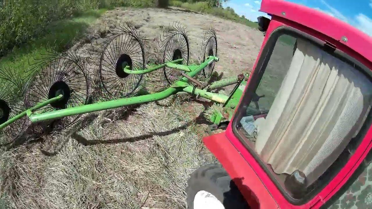 Ворошение сена перед тем как собрать по два валка.