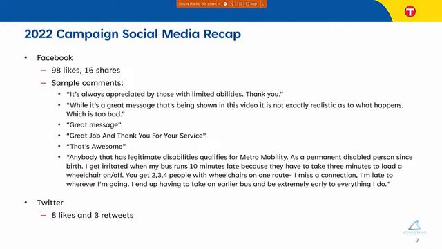 Agenda Call to Order Roll call 12:30 – 12:35 Approval of the Agenda 12:35 – 12:40 Approval of February 01, 2023, Transportation Accessibility Advisory Committee minutes 12:40 – 12:45 Business & Information Items Network Now 12:45 – 1:15 Sophia Ginis, Metro Transit’s Director Community Affairs Priority Seating Update 1:15 – 1:45 Sophia Ginis, Metro Transit’s Director Community Affairs Legislative Update 1:45 – 2:10 Hannah Pallmeyer, Government Affairs Liaison Reports 2:10 – 2:20 Subcommittee Blue Line – Ken Rodgers Green Line – Christopher Bates Gold Line – Darrell Paulsen Purple Line – Darrell Paulsen Bus Priority Seating TAAC Work Group Chairs Report Public Invitation 2:20 – 2:25 Invitation to interested persons to address the Transportation Accessibility Advisory Committee. Pre-register at public.info@metc.state.mn.us. Each speaker is limited to a three-minute presentation. Member Comment 2:25 – 2:30 Adjournment 2:30