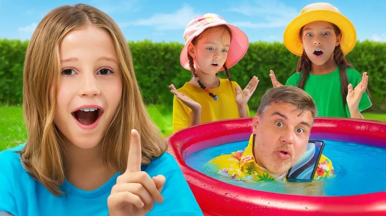 Настя и папа показывают детям правила безопасности в бассейне