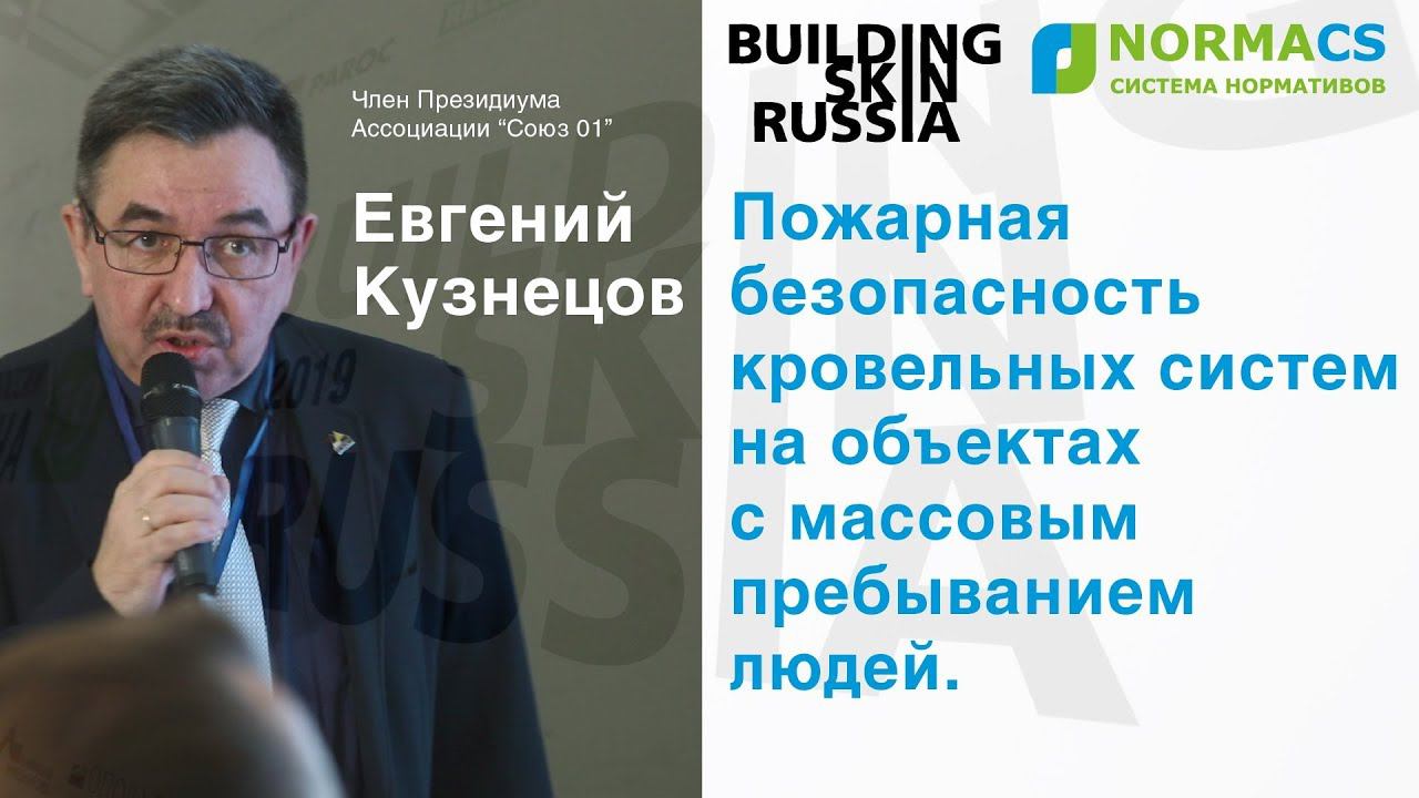 Евгений Кузнецов, член Президиума Ассоциации Союз 01. Доклад на Building Skin Russia 2019: "Пожарная безопасность кровельных систем на объектах с массовым пребыванием людей". www.normacs.info