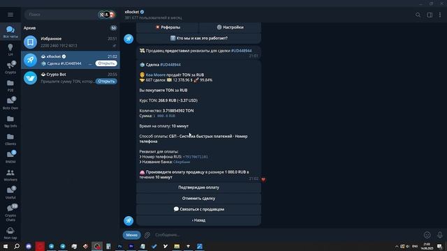Наш бот для покупки TON - https://t.me/lh_tonbuy_bot WhiteBird - https://whitebird.io/?refid=ko9Sm CryptoBot - https://t.me/send?start=r-k2cmg-market XRocket - https://t.me/xrocket?start=p2p_JZgAwbdNQ5 ТГ-канал - https://t.me/lh_crypto1 Купить звезды - https://t.me/lh_crypto1/4732 Продать звезды - https://t.me/lh_crypto1/7430 Реф-бот - https://t.me/lhrefs Зарабатывай на схемах - https://clck.ru/3EYXhF Наш чат - https://t.me/leanchatik 00:00 Вступление 00:45 Все о кошельках 03:05 Создание кошелька 05:53 Где купить? 06:46 Покупка через Xrocket & CryptoBot 14:12 Продажа через Xrocket & CryptoBot 17:53 Продажа через WhiteBird (100% надежность) 23:12 Почему не стоит использовать Telegram Wallet? Сегодня поговорим о том, как совершенно законно покупать и продавать криптовалюту для жителей РФ и РБ, желаю приятного просмотра! Все сервисы находятся в описании под видео! Каналы по заработку телеграме - https://t.me/lh_perehodnik Используй и создавай ботов в телеграме — https://t.me/lh_bots По любым вопросам — https://t.me/lhmanag #leanhustle #крипта #п2п