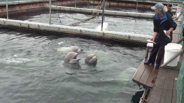 Белухи бухты Средняя в Приморье. До недавнего времени этот Центр адаптации морских млекопитающих никто не трогал и в упор не видел. Сейчас вокруг него шумиха. Проблема не очень быстро, но как-то, так или иначе, решается, и, наверное, решится – вроде бы скоро, в апреле, ну а белух (и косаток), конечно, никто не спрашивает – зачем, и им остаётся только одно – ждать.