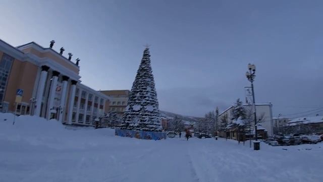 Елка возле театра. Магаданские елки. Прогулки с Анжелиной по Магадану 2020