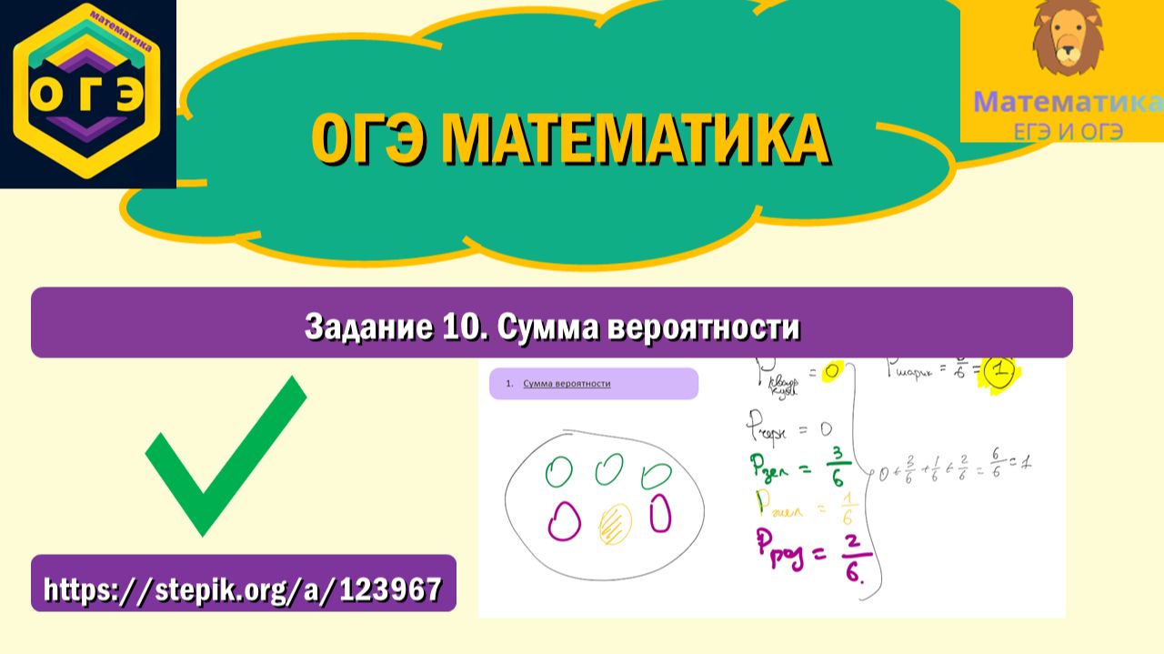 Продолжение на степике: https://stepik.org/a/123967. Вся теория и разбор задач, которые точно встретятся на ОГЭ по математике! ТГ-канал: t.me/ege_oge_maths. В видео разбираем Задание 10, разбираем сумму вероятности.
