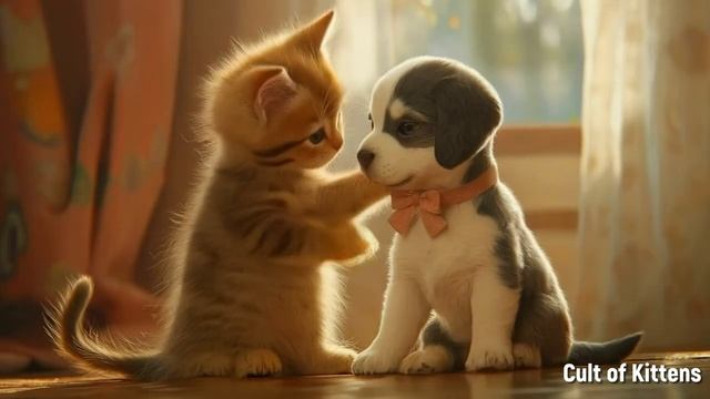 A tiny kitten takes care of a puppy _ Cult of Kittens AI