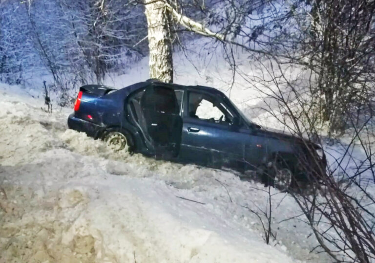 Hyundai Accent съехал с дороги и врезался в дерево в Ульяновской области