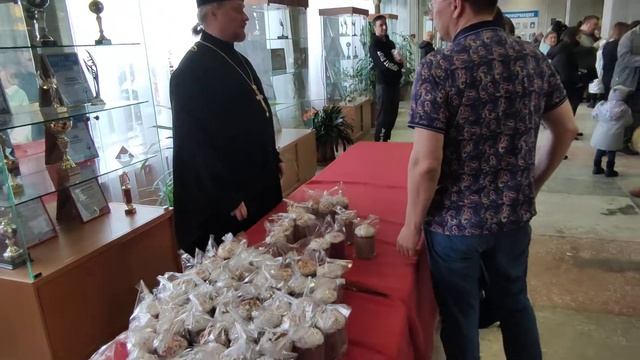 Раздача куличей после Пасхального концерта. Дом Культуры Юбилейный 24 Апреля 2022г