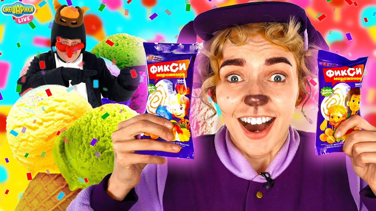 МОРОЖЕНОЕ ФИКСИКИ! БАРАШ, ПИН И СМЕШАРИКИ ПРОБУЮТ МОРОЖЕНОЕ - СИМКА И НОЛИК!