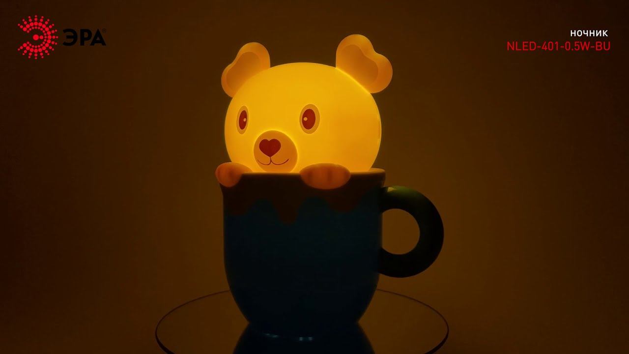 Светильник-ночник ЭРА "Мишка в стакане" NLED-401-0.5W-BU синий