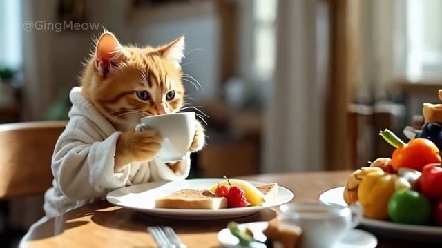 Tiny Cat’s Cozy Morning Routine! _ #cat #kitten #morning #cute