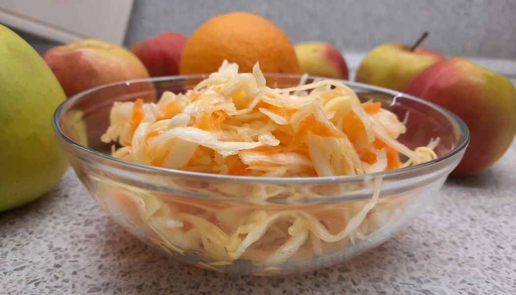 Простой и вкусный салат из капусты с яблоком.