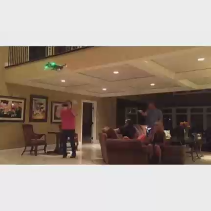 Мужчина запустил дрон у себя дома, но не справился с управлением и дрон врезался в потолок. #дрон #квадрокоптер #фейл #прикол