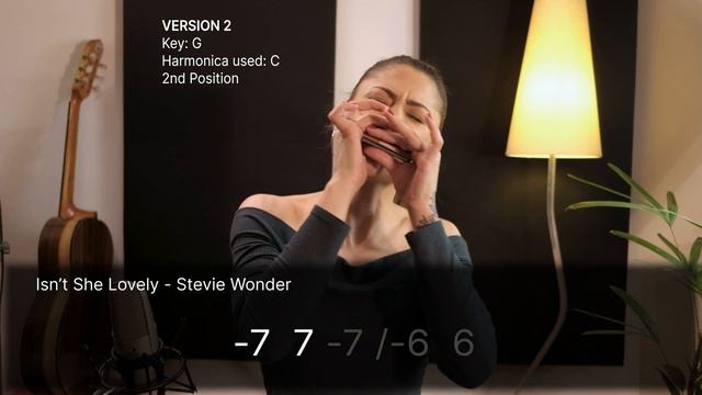 https://www.harmoniclass.com This is the third song in the series of free tabs in November. "Isn't She Lovely"", by the great master Stevie Wonder. The meaning of the symbols used is below, enjoy! TIP: Use the YouTube speed control. . Learn how to play the Harmonica with Indiara Sfair! https://www.harmoniclass.com . TAB SYMBOLS GUIDE: NUMBERS Each number corresponds to one of the 10 harmonica holes. / SLASH Hit bend and release. \ REVERSE SLASH Hit note then bend. ' ONE APOSTROPHE Bend a half step. " TWO APOSTROPHE Bend a whole step. ''' THREE APOSTROPHE Bend one and a half steps. = EQUALS SIGN Trill. A quick, repeated alternation between two neighboring notes or holes in the harmonica. ...ELLIPSIS Glissando. Slide quickly through several notes before or after the desired note. () PARENTHESES Play the notes section simultaneously Hand effects and vibrato are not tabbed out.