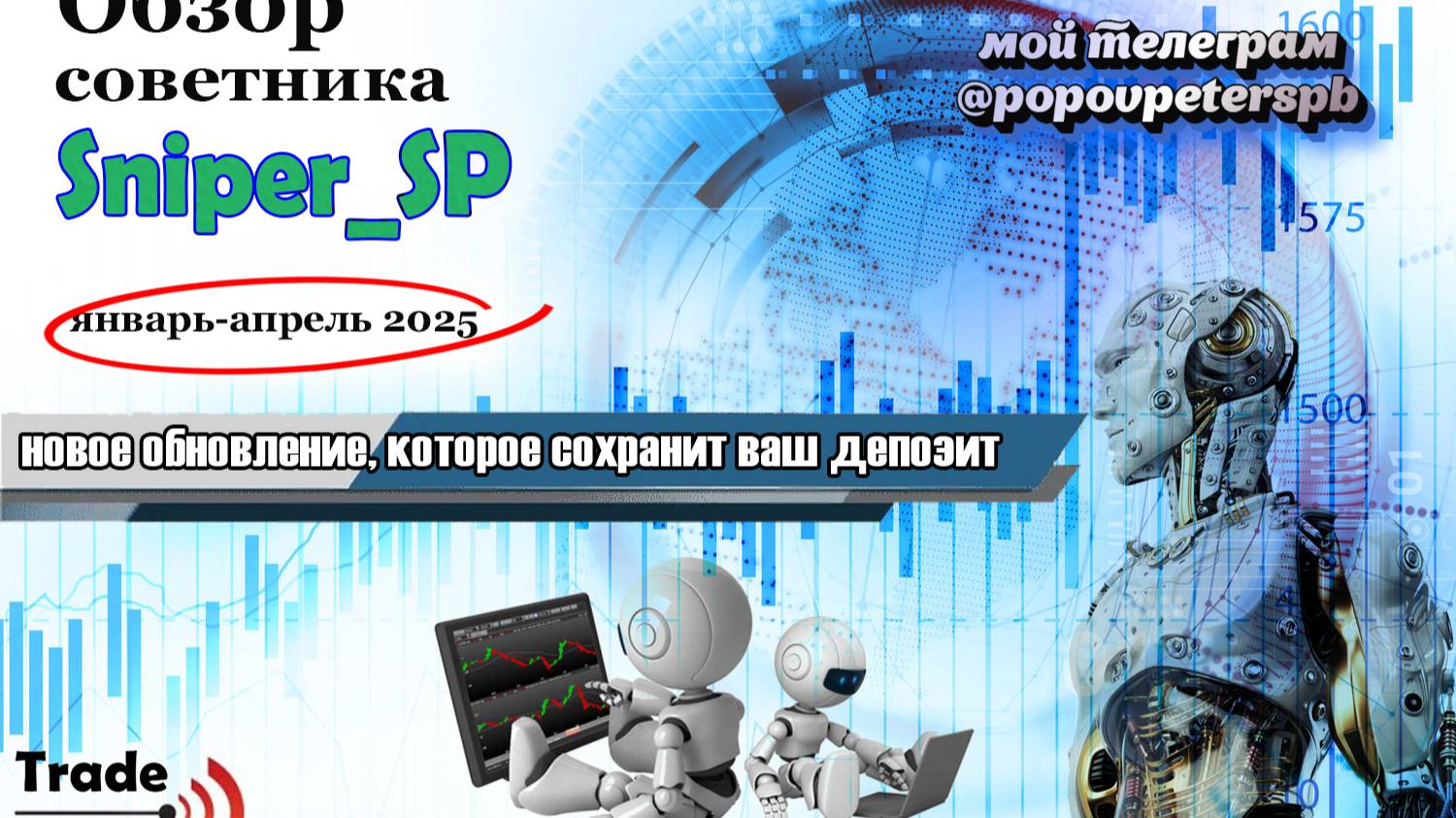Всем привет. Мой канал - единственный, где показываю работу своего торгового советника SniperSP для рынка форекс, где бот зарабатывает в режиме онлайн. Показываю все сделки бота, статистику и принцип работы советника. Также, для всех пользователей бота SniperSP есть отдельный канал в телеграм, где постоянно оказываем тех. поддержку. Советник SniperSP написан точно по системе SPIDER и СНАЙПЕР. Обе системы совмещены в этом боте. Каждая сделка имеет стоп и тейк Бот не усредняется, Бот не строит сетку ордеров Бот не использует Мартингейл Работает на полном автомате и зарабатывает Бесплатно сигналы на рынок форекс Брокеры партнеры, которые дадут вам лучшие условия для получения советника SniperSP GracexFx https://gracexfx.com/?promo=6959353 Амаркетс https://profit-market.info/fx/?g=ELIG6 Робофорекс https://my.roboforex.com/en/?a=crjw FxPro https://fxpro-direct.com/ru/partner/9161671 Grand Capital https://ru.gcoption.com/?note=6005329 Открытая ссылка на канал в ТЕЛЕГРАМ: https://t.me/Trade_fm_forex Телеграм: @popovpeterspb https://vk.com/trade_fm