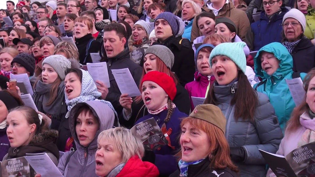 Песни Великой Победы. Сводные хоры на ступеньках Биржи. Санкт-Петербург, Стрелка Васильевского острова. 9 мая 2019 г. Запись - Алла Левитан.