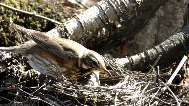 ГНЕЗДО. Пугливая самка Дрозда Белобровика