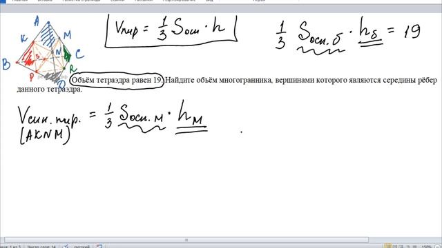 Объём тетраэдра 19 Найдите объём многогранника, вершинами которого являются середины рёбер