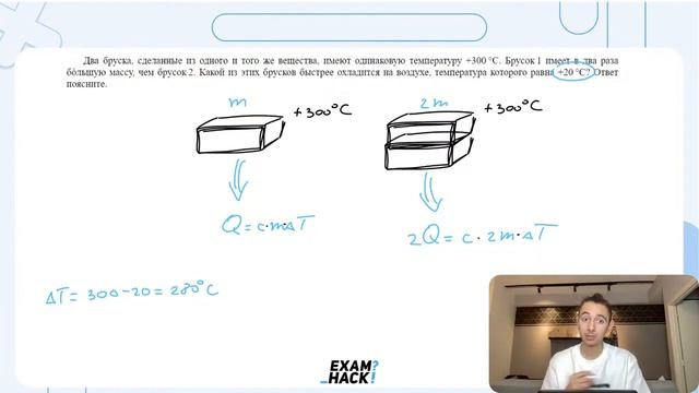Два бруска, сделанные из одного и того же вещества, имеют одинаковую температуру +300 °C - №25904
