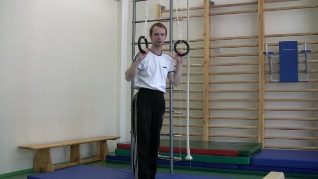 Вис прогнувшись на гимнастических кольцах