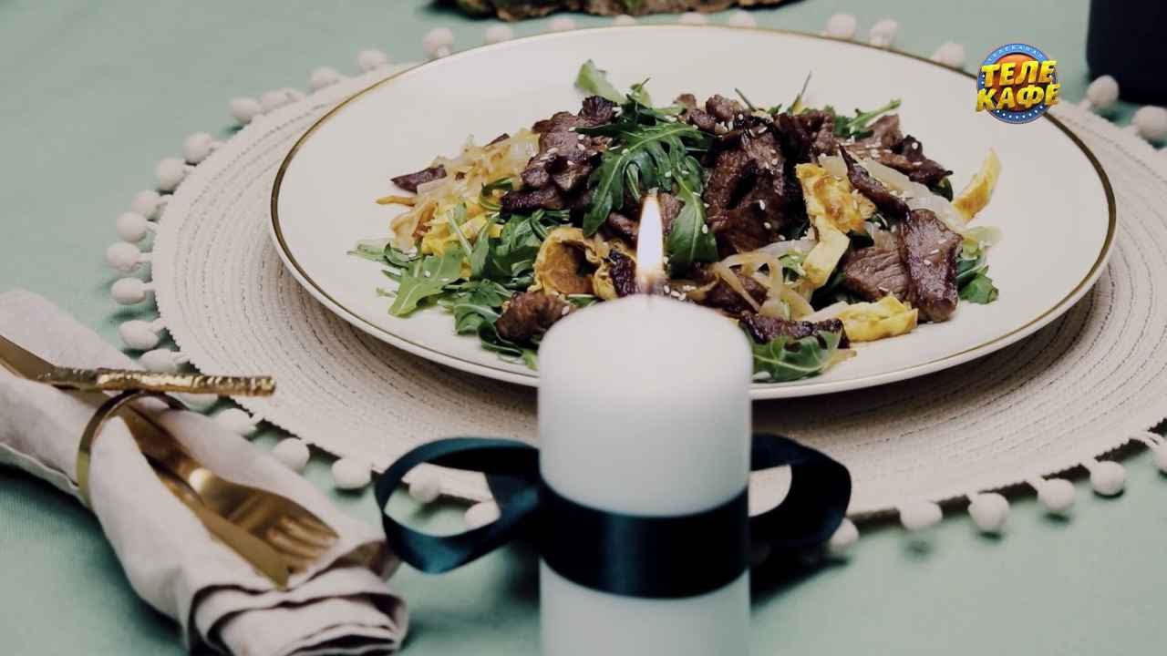 Салат из говядины с яичными блинчиками