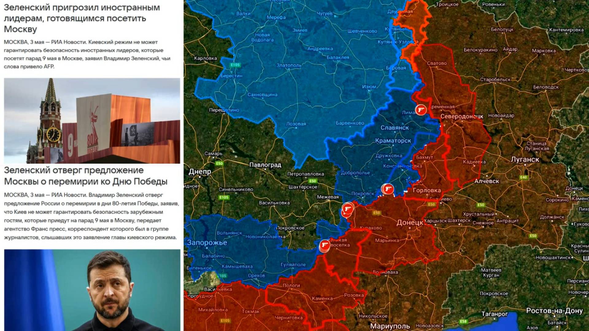 Карта боевых действий. Зеленский не согласился на перемирие на День Победы