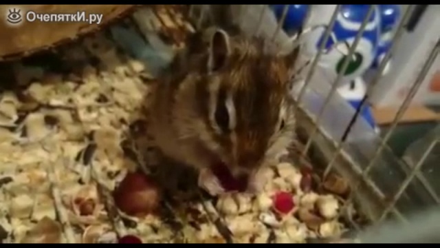 Бурундук кушает вишню