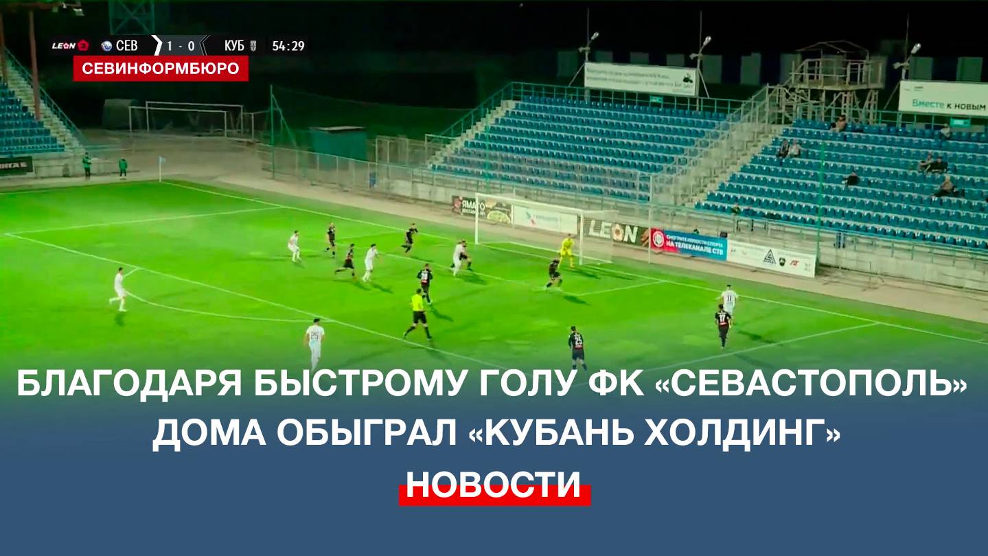 Благодаря быстрому голу футбольный клуб «Севастополь» дома обыграл команду «Кубань Холдинг». Эта встреча состоялась в нашем городе 2 ноября. Единственный мяч, ставший в итоге победным, на свой счёт уже на 2-й минуте записал капитан севастопольцев Редван Османов. Подписывайтесь на наш Телеграм-канал: https://t.me/nts_novosti Смотрите новости Севастополя и Крыма на сайте НТС: http://nts-tv.com В нашей группе "ВКонтакте": https://vk.com/ntssevastopol На странице в "Одноклассниках": https://ok.ru/ntssevastopol