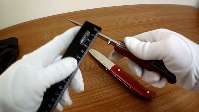 Складной нож с фиксатором удобен для повседневного ношения и использования. Клинок с прямыми спусками от обуха. Классический ручной механизм раскрытия/складывания лезвия имеет жесткий пружинный фиксатор. Монтаж рукояти накладной. Болты, стягивающие накладки рукояти, открыты, не спрятаны пинами, при необходимости их можно раскрутить и собрать заново. Довольно длинная рукоять удобно лежит в любой, даже крупной, ладони. Клеймо с логотипом «АиР» нанесено на обух, а не на традиционную пяту клинка ножа. За счет крайне надежного фиксатора такой складной нож прослужит долго и верно.