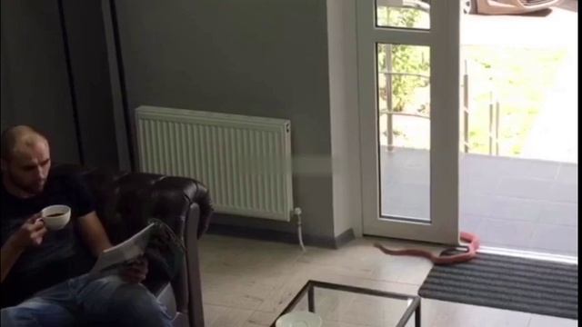 Его помощь не помешает клиенту краснодарской парикмахерской. #испуг #реакция #мужик #змея #парикмахерская #прикол #внезапно